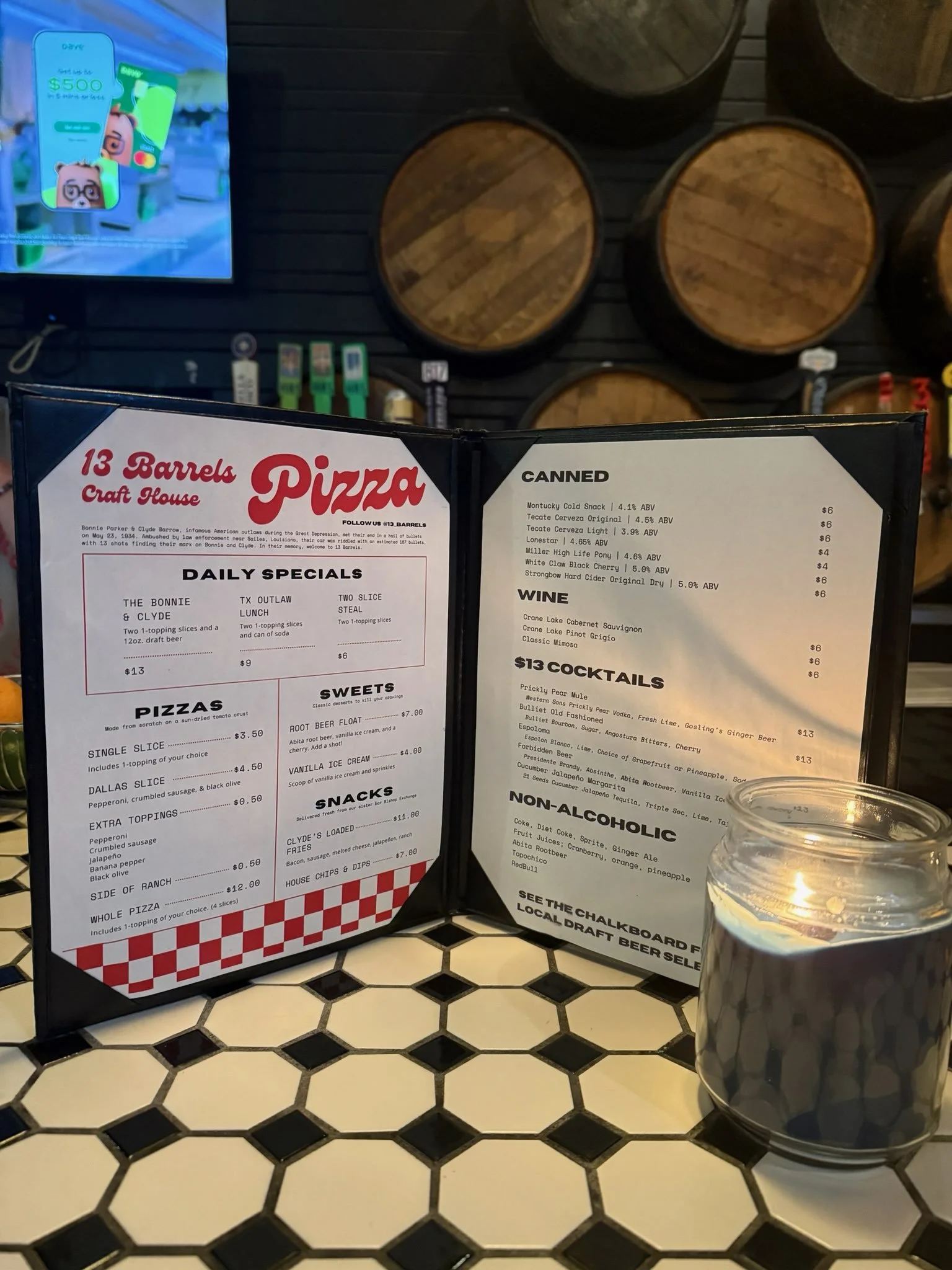 Check out our daily specials for pizza by the slice everyday until close. All fresh, local ingredients and made to order.